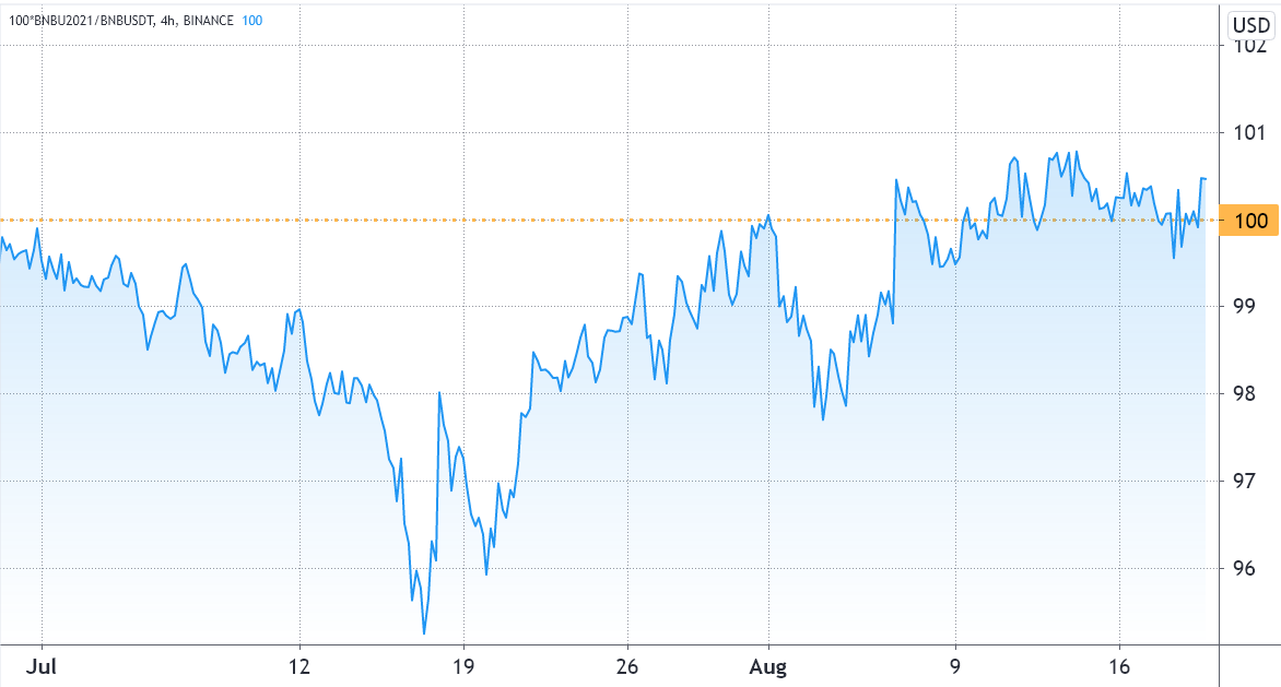 币安9 月 BNB/USDT 期货与常规现货市场的溢价。 资料来源:TradingView