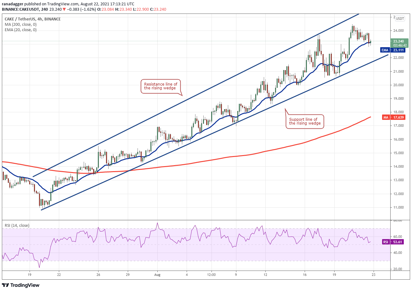 CAKE/USDT 4 小时图。 资料来源:TradingView