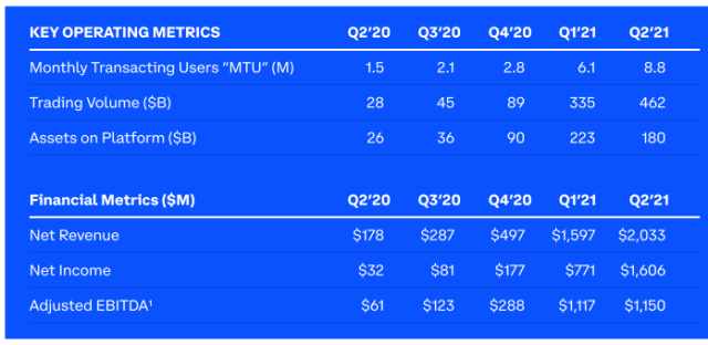 以下是 Coinbase 2021 年第二季度统计数据的快速细分: