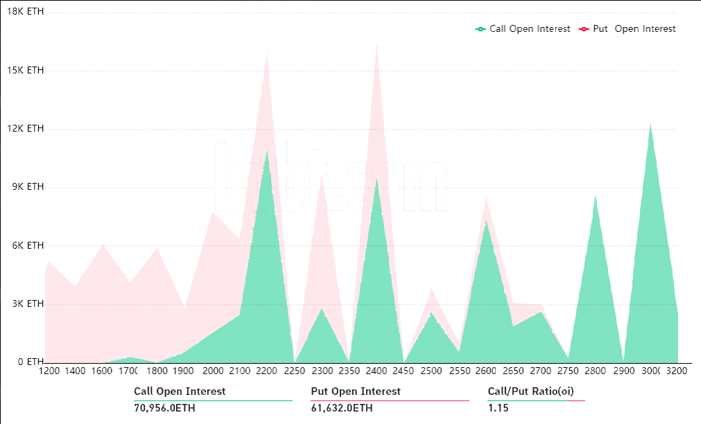 如图所示,空头并不期望以太币达到 2,700 美元,这可以在没有高于执行价格的保护性看跌期权(粉红色区域)的情况下看到。