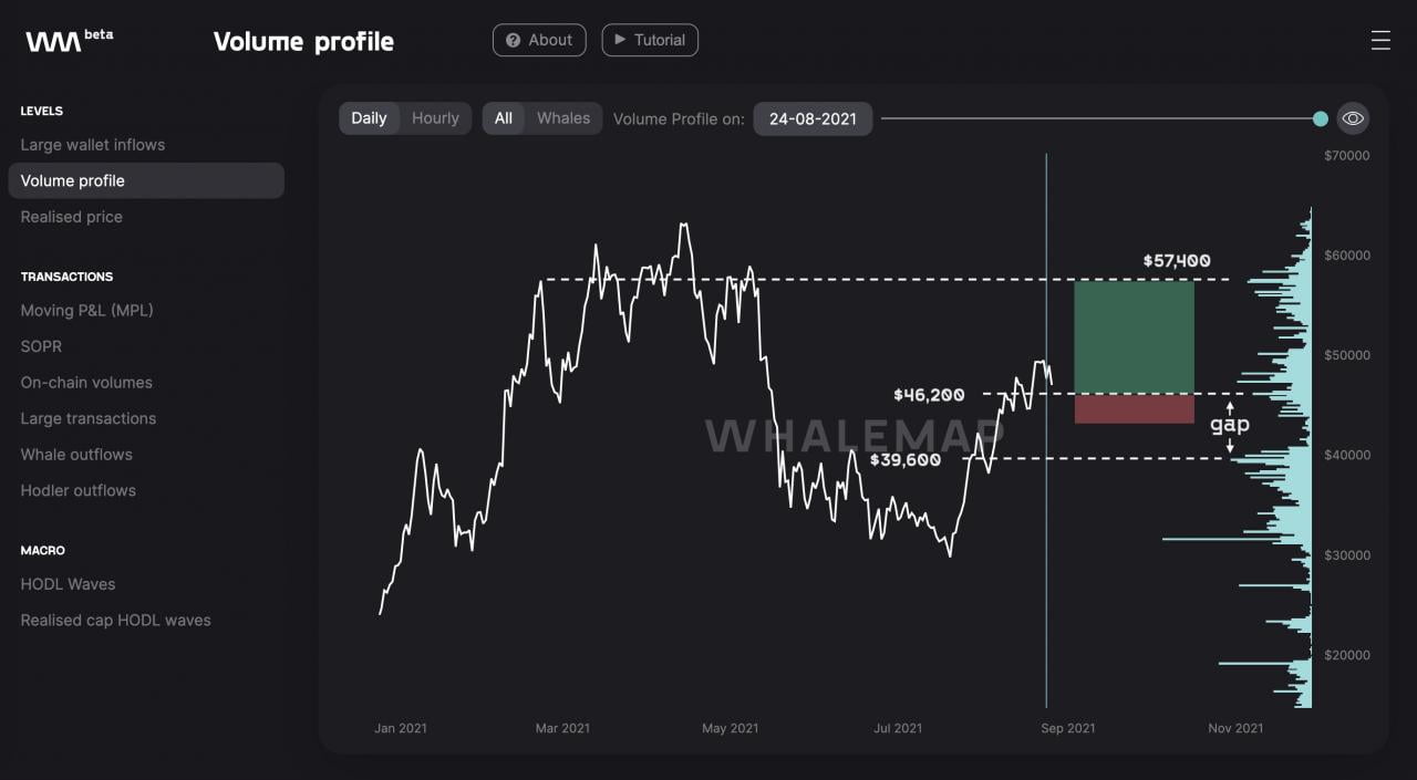如提供的K线走势图所示,46,200 美元的支撑位很重要,因为下一个支撑位为 39,600 美元。 链上数据还显示,46,200 美元至 57,400 美元之间的销售量有限。