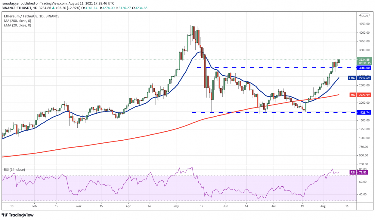 8 月 9 日以太坊 (ETH) 的强劲反弹表明多头将 3,000 美元的水平转为支撑位。 这一水平很可能成为未来下跌的总结。