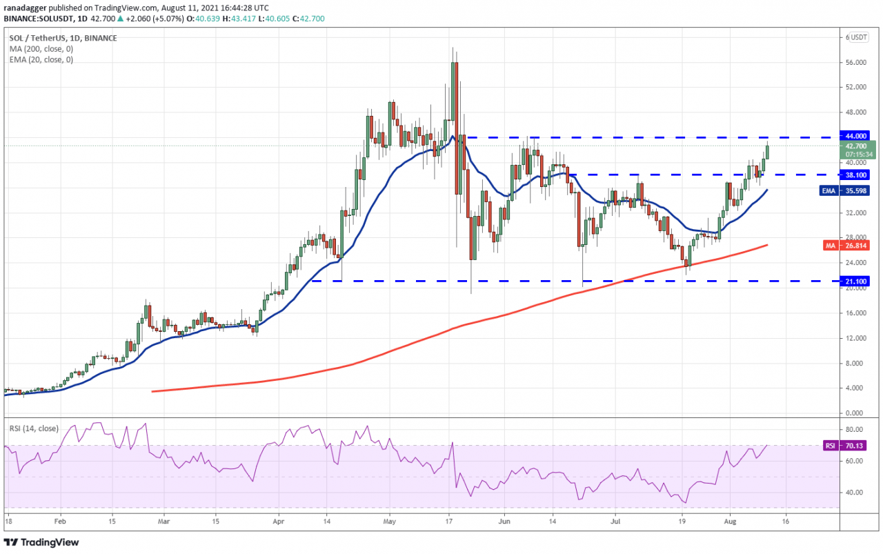空头未能在 8 月 9 日将 Solana (SOL) 维持在 38.10 美元以下吸引了进一步的买盘,这将价格推高至 44 美元的上方阻力位。