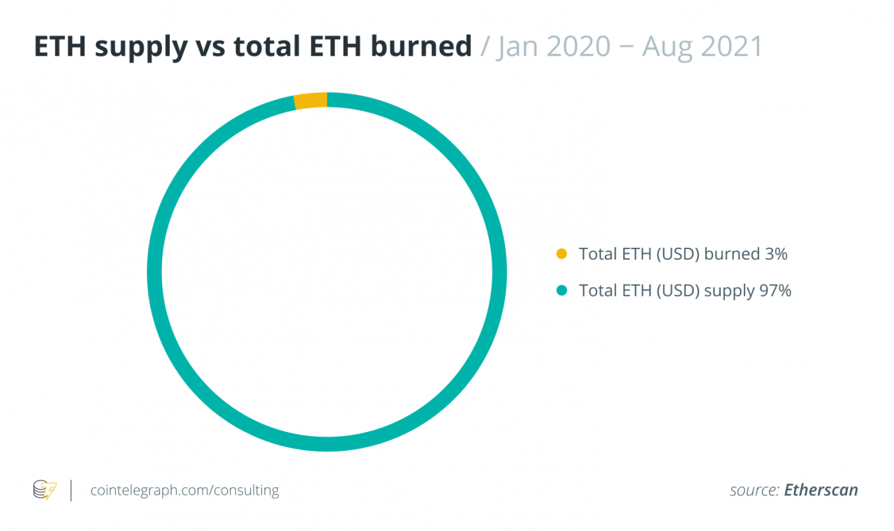 这导致 300 万个以太币的供应被烧毁,约占每年总通货膨胀的 17%。 这是通货膨胀的显着降低,预计从长远来看,这将增加以太的稀缺性。