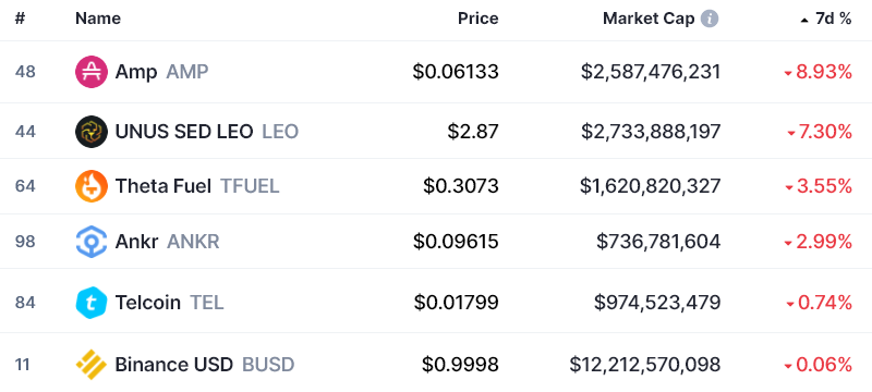 在 100 家最大的公司中,每周表现最差的公司。 资料来源:CoinMarketCap
