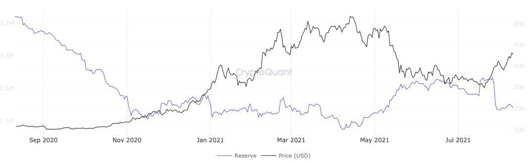 来自链上分析服务 CryptoQuant 的数据证实,截至 8 月 10 日,衍生品储备总额为 125.6 万 BTC,这是自 5 月 11 日以来的最低水平。