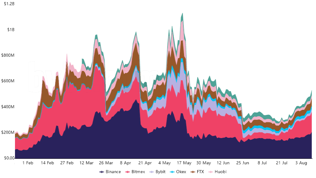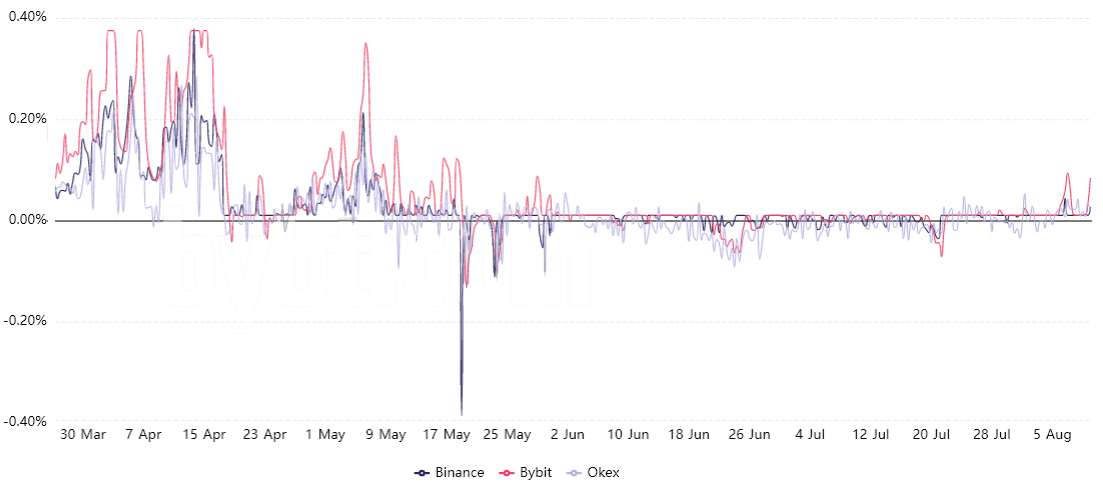 自 5 月 19 日崩盘以来,卡尔达诺的融资利率一直在从零到略微为负的范围内,这表明空头需要更多杠杆。 尽管如此,8月7日出现了趋势反转的早期迹象,但尚未得到证实。