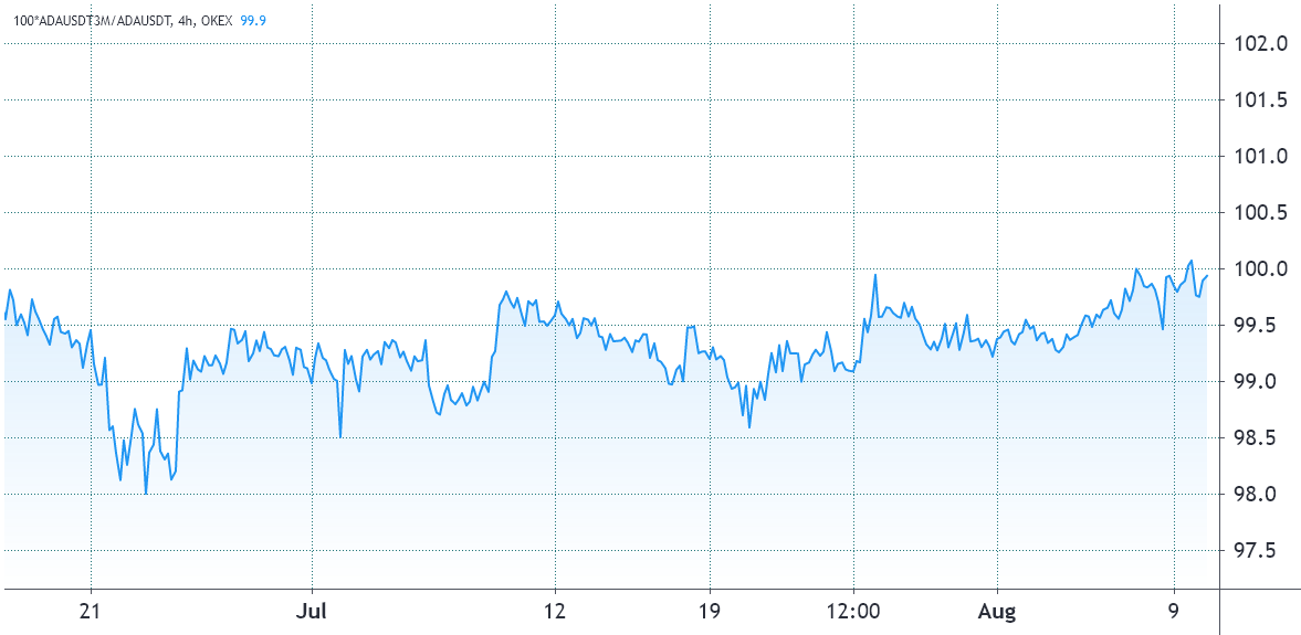 OKEx 9 月 ADA/USDT 期货相对于常规现货市场的溢价。 资料来源:TradingView