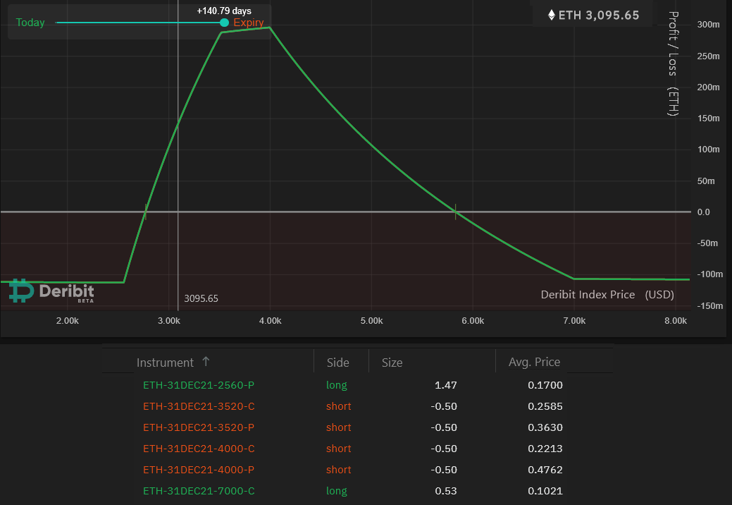 通过使用倾斜版本的铁神鹰,只要到年底以太币价格涨幅低于 88%,投资者就可以获利。