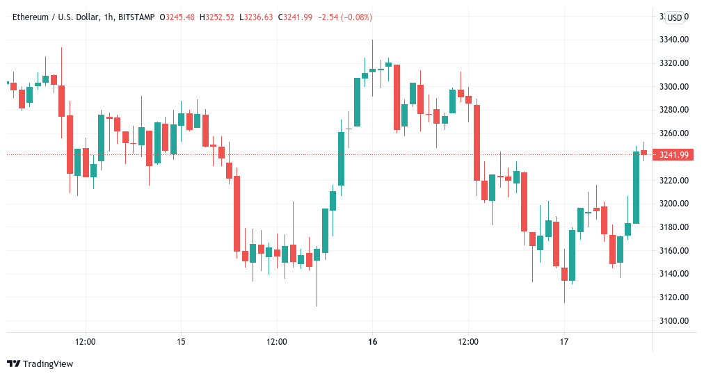 以太币 (ETH) 保持在 3,200 美元以上,就像比特币一样,自 8 月初波动以来一直处于较窄的范围内。