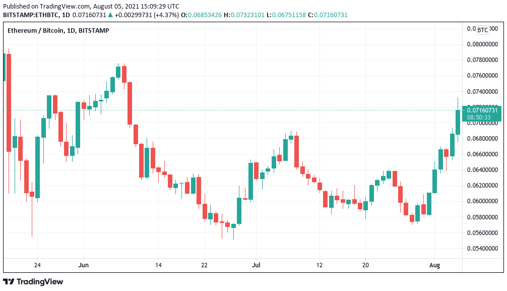 ETH/BTC 1 天蜡烛图 (Bitstamp)。 资料来源:TradingView