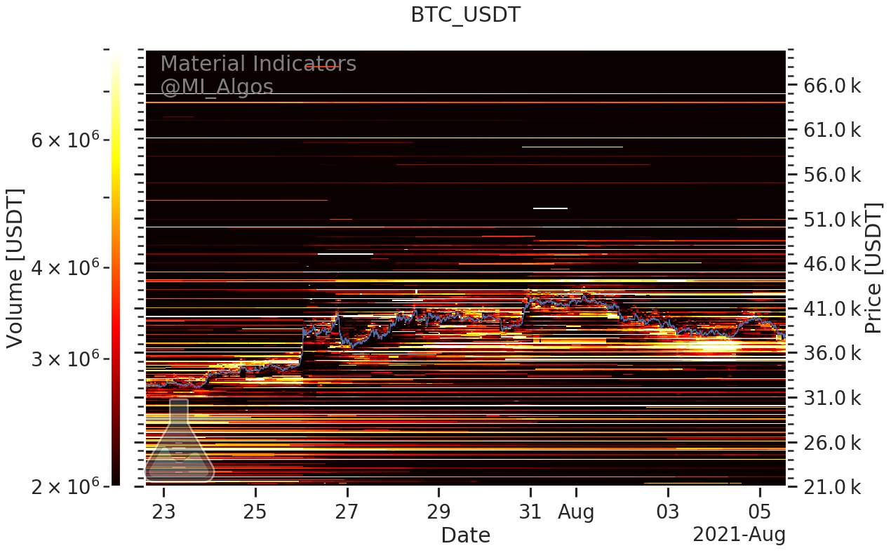 截至 8 月 5 日的 BTC/USD 买卖水平(Binance)。资料来源:Material Indicators/ Twitter
