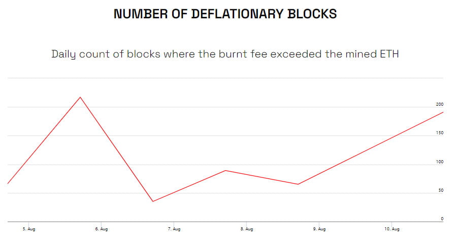 当销毁的 ETH 数量大于挖矿奖励时,会产生通货紧缩的区块,供应量暂时减少。 这已经在咨询公司 Carbono 的跟踪器上观察到,该公司目前报告称,到目前为止已经有 791 个通货紧缩区块,它定义为销毁费用超过开采的 ETH 的区块。