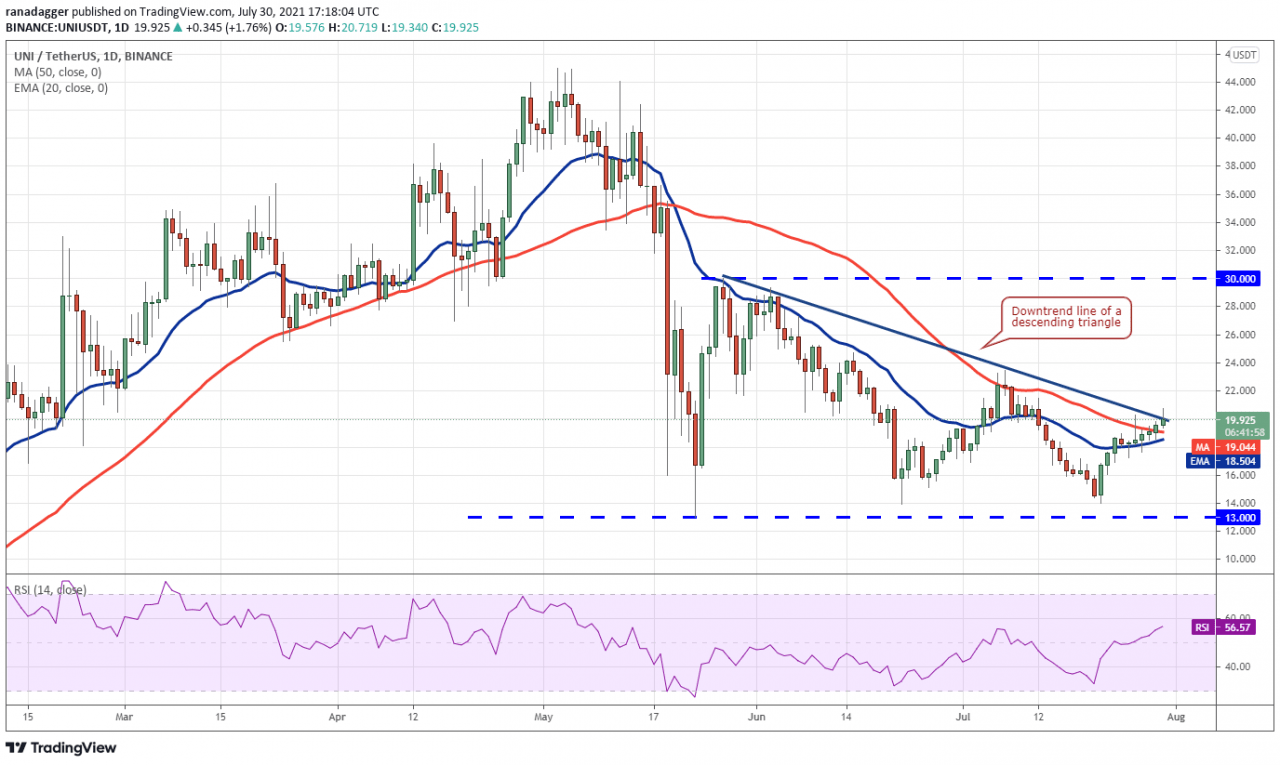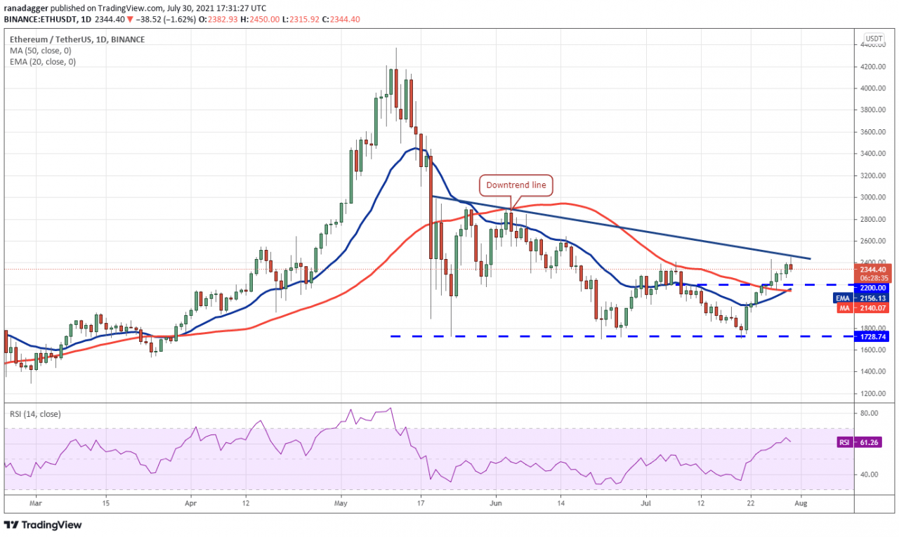 比特币在 7 月 29 日形成了十字星烛台形态,表明多头和空头在 40,000 美元大关附近犹豫不决。 这种不确定性短暂地解决了下行问题,如果价格不能将最近的飙升保持在 40,000 美元以上,则价格可能会跌至 36,670 美元。