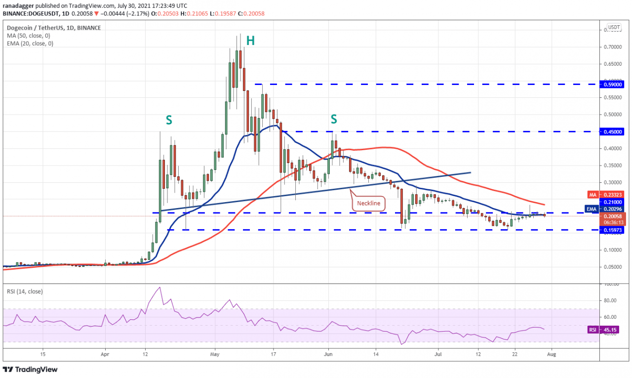 空头在过去几天一直在捍卫 0.21 美元的阻力位,但一个小小的积极因素是多头并没有放弃太多。 这表明买家不会因为他们预期狗狗币(DOGE)上涨而平仓。