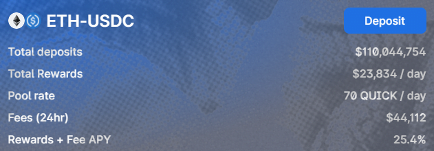 QuickSwap 上的 ETH-USDC 流动性矿池奖励。 来源:QuickSwap
