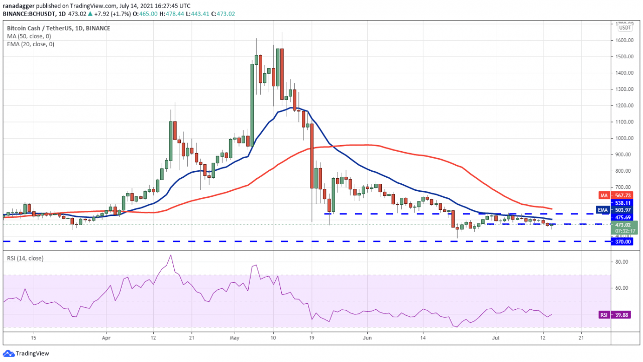 比特币现金(BCH)在 475.69 美元至 538.11 美元之间的窄幅交易在 7 月 13 日解决下行。这表明供应超过需求,因为多头不确定已经触底。