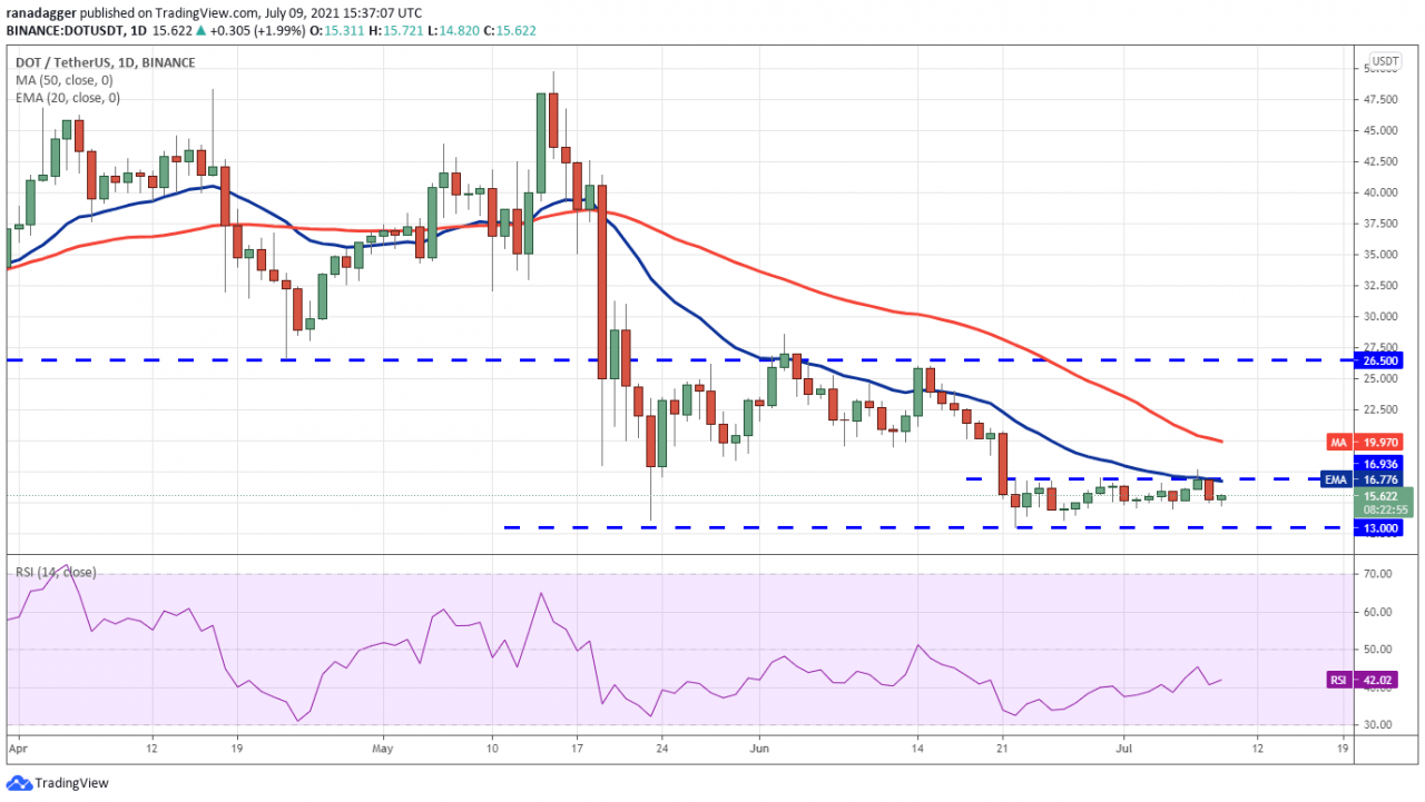 如果空头将价格压低至 13 美元以下,下跌趋势可能会恢复,DOT/USDT 对可能会跌至 10 美元的心理支撑位。 如果价格从当前水平上涨并突破 17.66 美元,这种负面看法将无效。