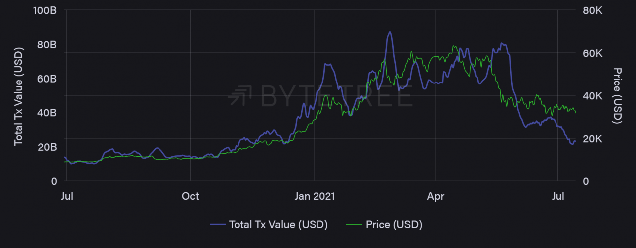 由于当前市场低迷和交易量下跌,比特币网络的交易总额已降至 236 亿美元,为 2020 年 12 月以来的最低水平。