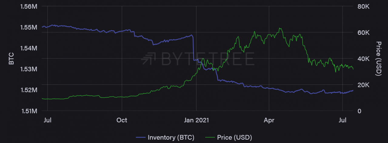 市场上的一个积极迹象是最近矿工增持的增加。 由于中国对挖矿业的打击,许多已经完全关闭并正在搬迁到其他国家的过程中,这一数字在最近几个月有所下跌。