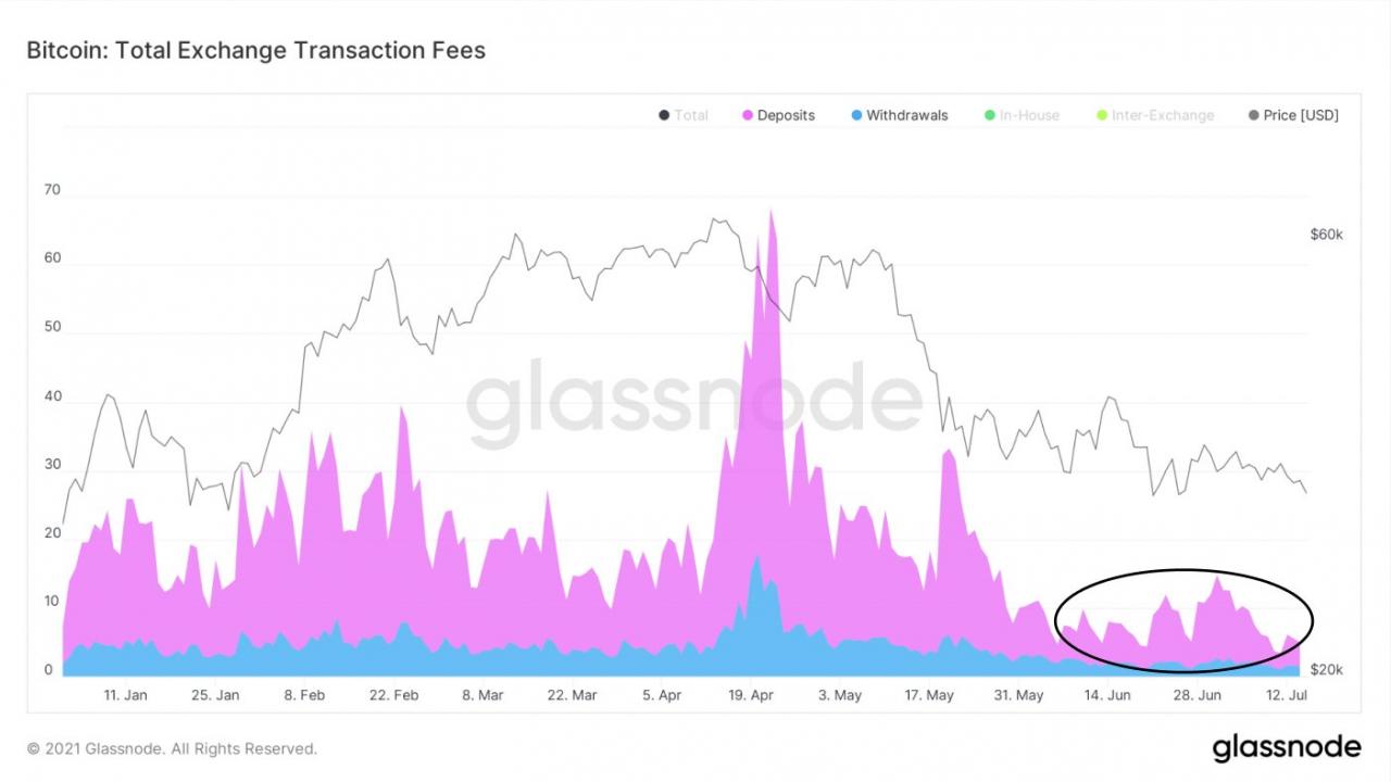 比特币总交易所交易费用注释K线走势图。 资料来源:Yann & Jan/推特