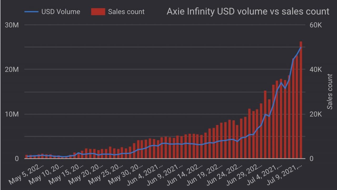 Axie Infinity 美元交易量与销售数量。 来源:推特
