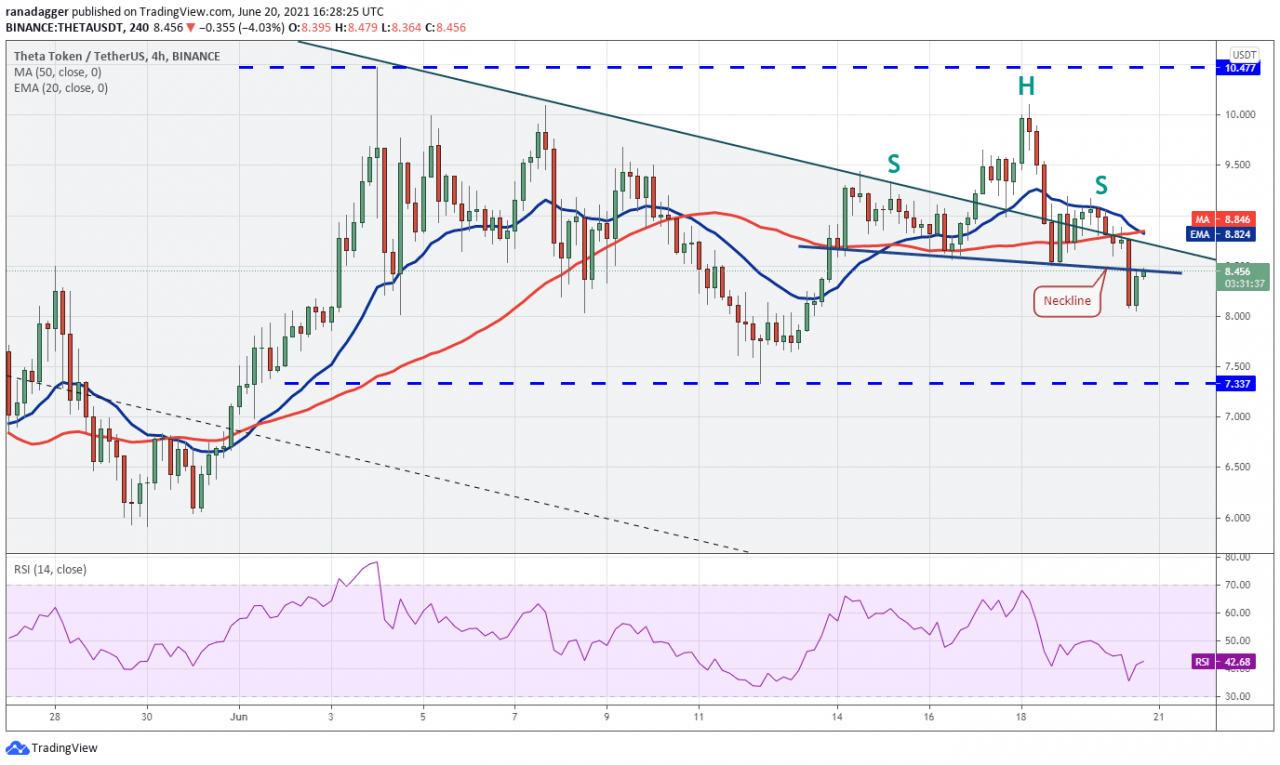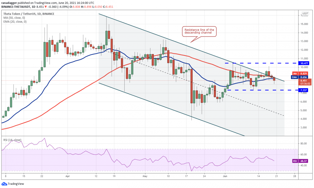 多头在 6 月 17 日将 THETA 推高至下跌通道的阻力线上方,但他们无法越过 10.47 美元的障碍。 这表明空头还没有认输,而是试图假装突破。