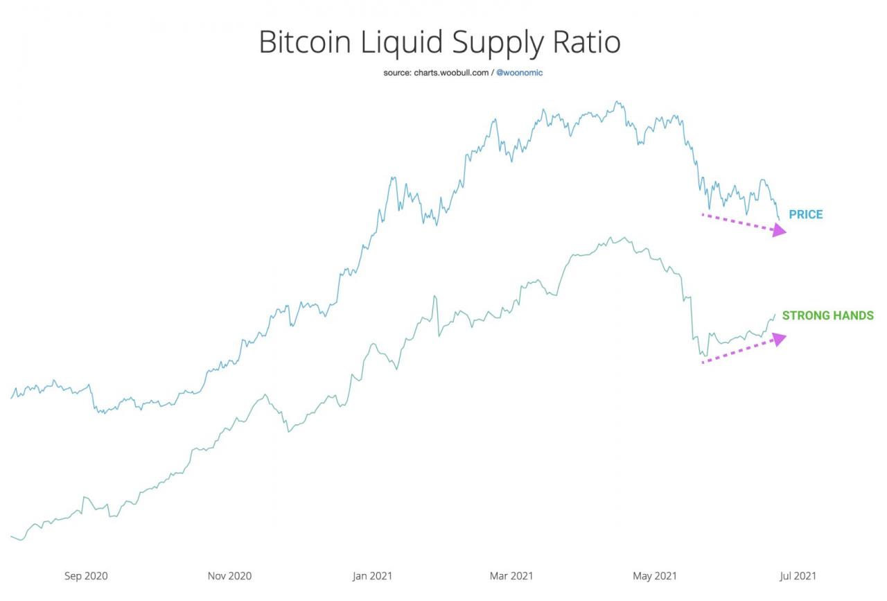 比特币流动性供应比率注释K线走势图。 资料来源:Willy Woo/推特