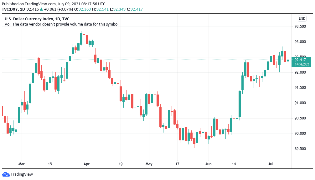 美元货币指数 (DXY) 1 日蜡烛图。 资料来源:TradingView