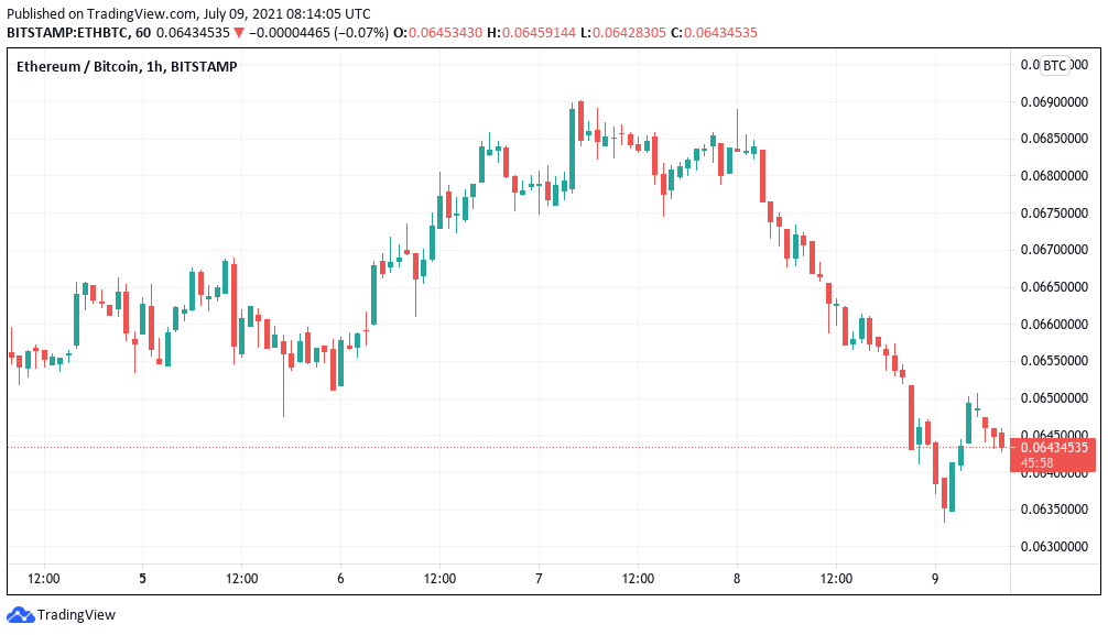 ETH/BTC 1 小时蜡烛图 (Bitstamp)。 资料来源:TradingView