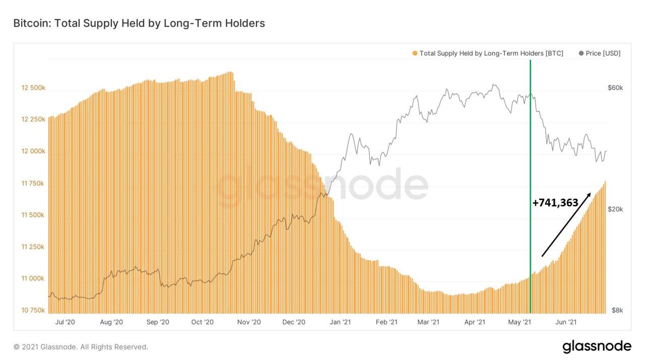 “比特币很便宜,长期持有 BTC 的人都知道这一点。 自 5 月底价格首次下跌以来,他们已增持了 741,363 BTC。