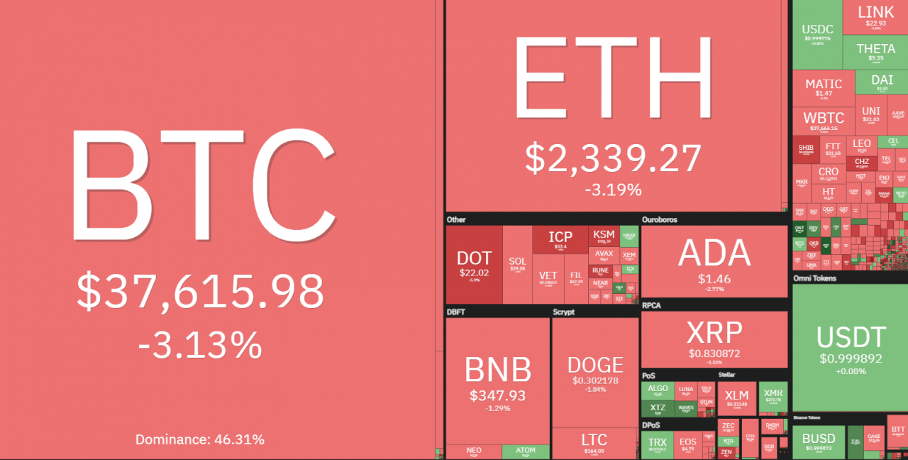 在多头试图重新夺回 40,000 美元的水平失败后,比特币 (BTC) 价格今天再次下跌至 37,365 美元。 由于美联储主席杰罗姆·鲍威尔 (Jerome Powell) 就未来上涨发表评论以及对通胀上涨的担忧导致比特币和黄金价格下跌,股市和大宗商品市场也出现了新的暴跌。