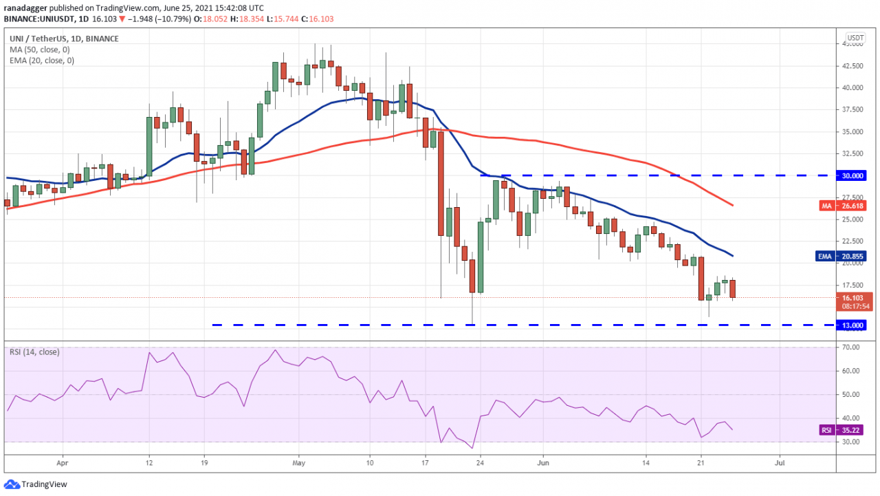 空头现在将尝试将价格压低至 13 美元支撑位以下。 如果他们设法将价格维持在支撑位以下,则 UNI/USDT 对可能会出现进一步抛售。 这可能会导致下跌至 10 美元,然后下跌至 7 美元。