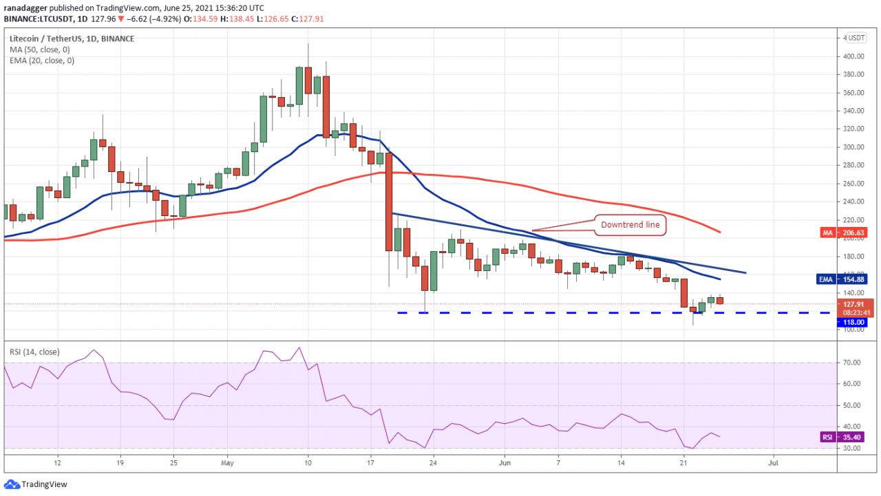 莱特币 (LTC) 从 118 美元的支撑位反弹缺乏力量。 这表明交易者并不相信已经触底。 向下倾斜的移动平均线和负区域的 RSI 表明空头处于主导地位。