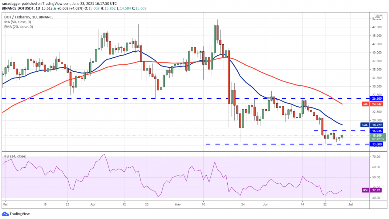 另一方面,如果多头能够将价格推高至 20 天均线(18.72 美元)上方,则表明在较低水平上增持。 DOT/USDT 货币对可能会反弹至上方阻力位 26.50 美元。