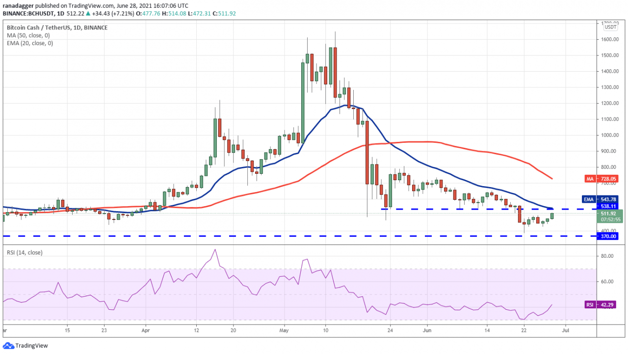 多头正试图将比特币现金(BCH)推至 538.11 美元的崩盘水平。 这是一个需要注意的重要阻力,因为 20 天均线(543 美元)就在其上方。 因此,空头将尝试积极防御阻力。