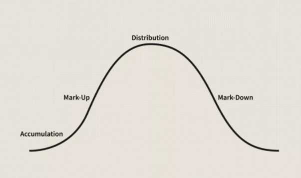 所有交易者都应该基本了解的市场周期的四个基本阶段是增持阶段、加价阶段、分配阶段和减价阶段。