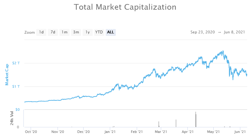 随着 BTC 和去中心化金融 (DeFi) 领域引起全球关注,加价阶段于 2020 年 12 月真正开始升温,并持续到 2021 年 1 月,5 月份总市值攀升至 2.5 万亿美元以上的高位。阶段开始。