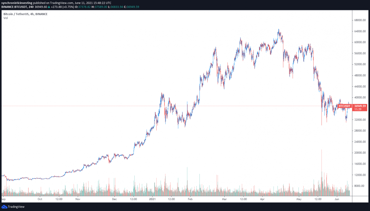 然后价格从 64,000 美元下跌至 47,000 美元,然后随着自满情绪开始反弹至 53,000 美元至 60,000 美元的范围。 5 月的抛售推动市场度过焦虑、否认、恐慌和投降阶段,以及生态系统对除了对市场施加下行压力的其他力量之外,马斯克的推文在社区内引起了极大的愤怒。
