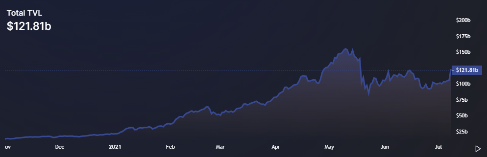 锁定在所有 DeFi 中的总价值。 来源:Defi Llama