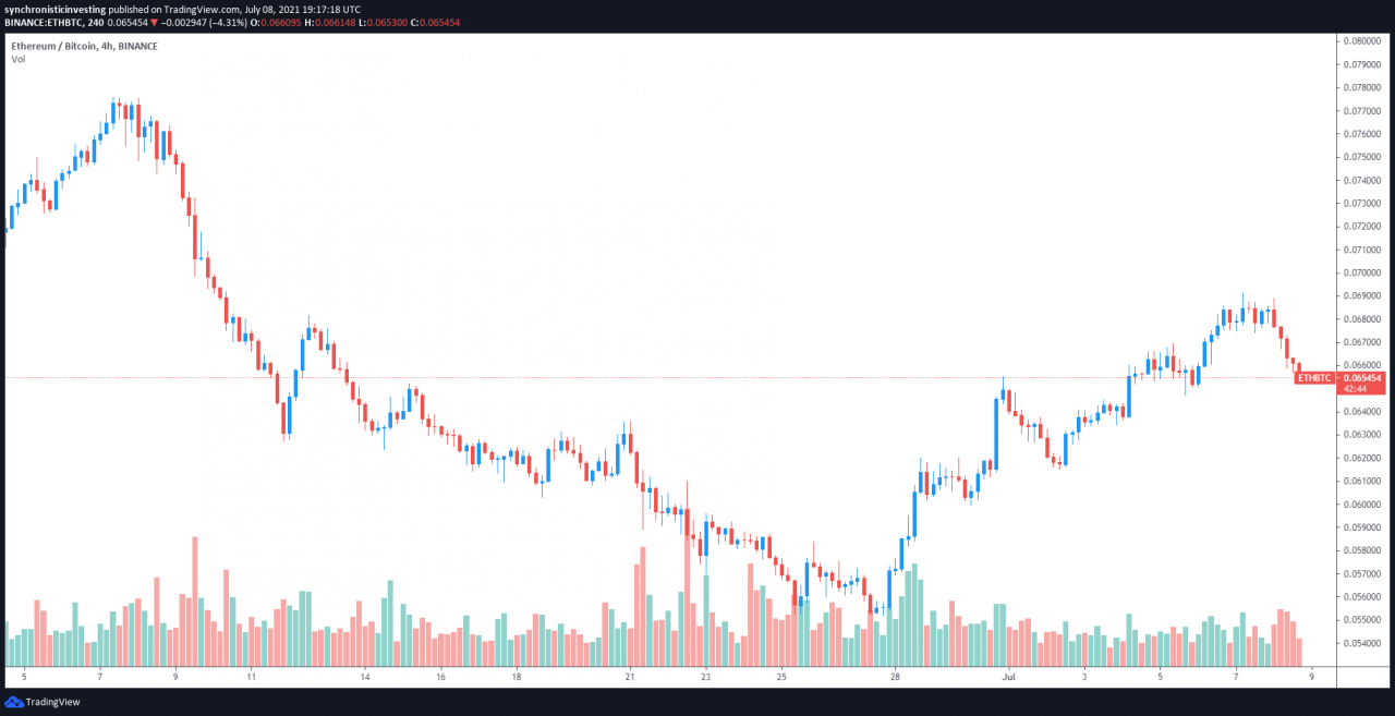 对即将到来的硬分叉的兴奋是自 6 月 27 日以来 ETH/BTC 对上涨的一个可能来源,因为 ETH 的价格也在其美元对中上涨。