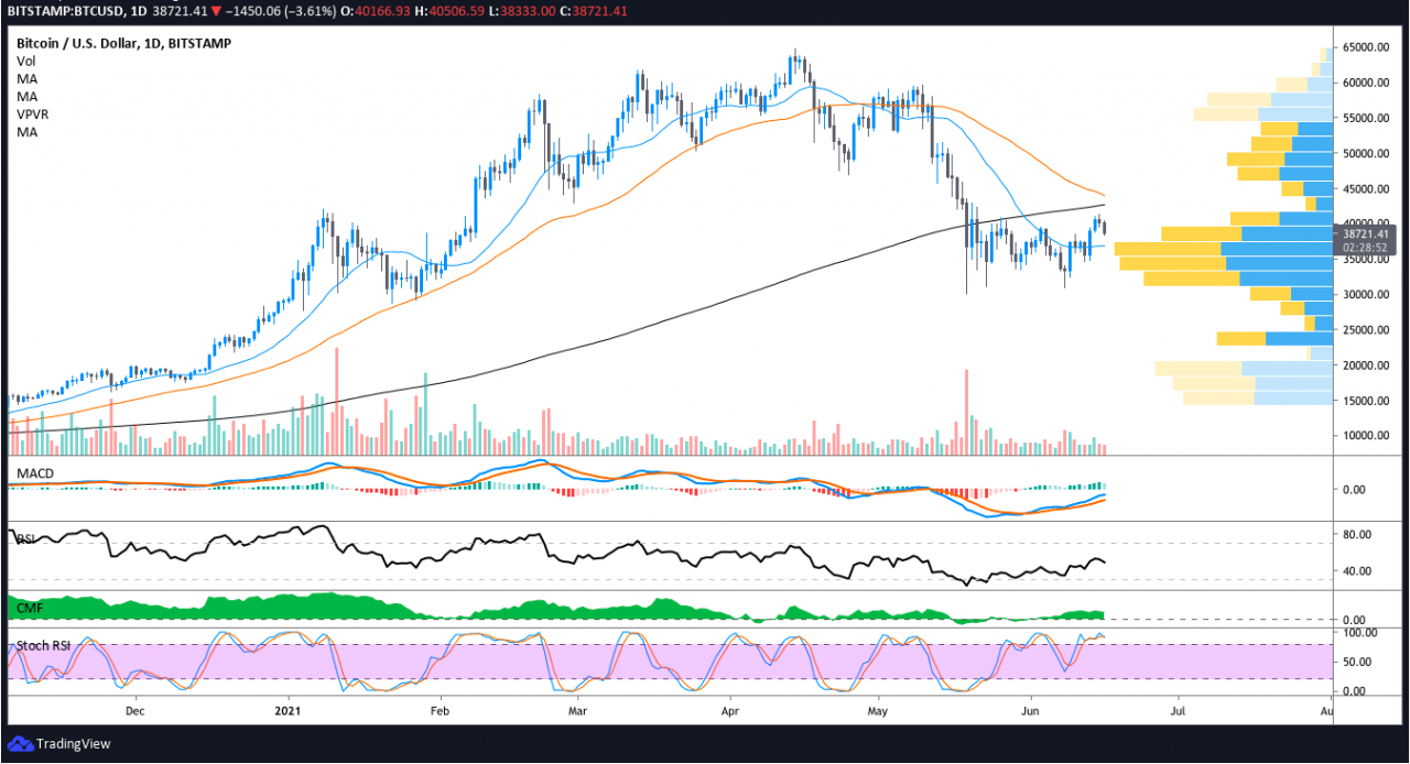 虽然价格已跌破 40,000 美元并且未能将水平超越至支撑位,但分析师认为当前的价格走势只不过是区间交易,在撰写本文时,38,300 美元看起来像是一个较低的支撑位重新测试。