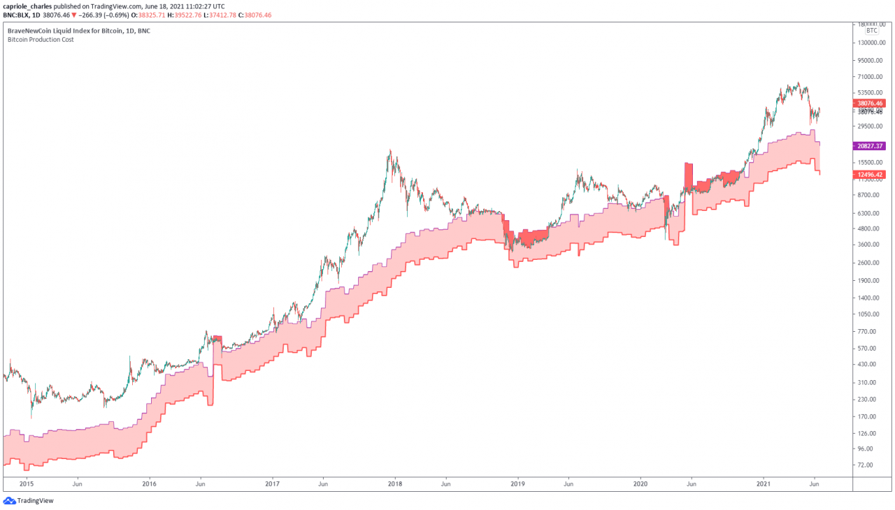 比特币生产成本与 BTC/USD K线走势图。 资料来源:查尔斯·爱德华兹/推特
