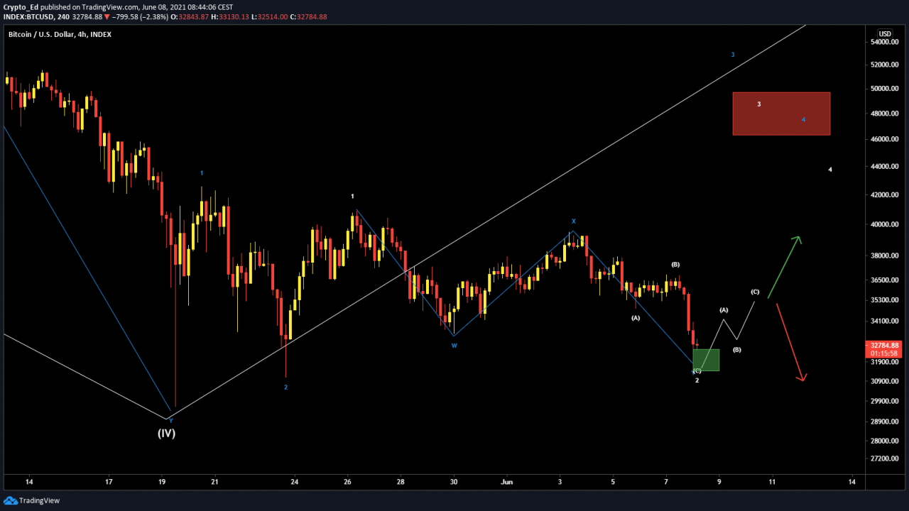 “现在在绿箱中,但我预计今天会再下跌 1 条腿,然后反弹至 ~35k,然后再次下跌,低于 30k,或再次‘上涨’,但后者感觉更像是一个奇迹。”