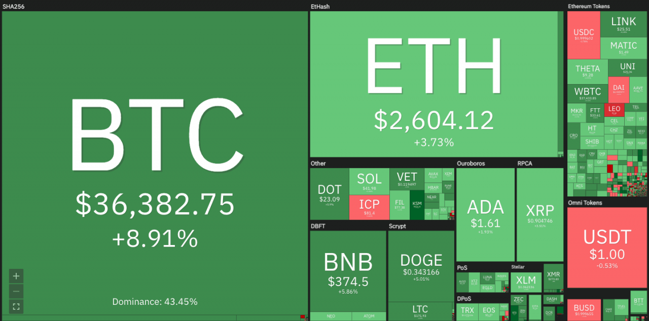 6 月 9 日,随着比特币 (BTC) 价格逆转并上涨 20% 至 37,500 美元,加密货币市场出现看涨。