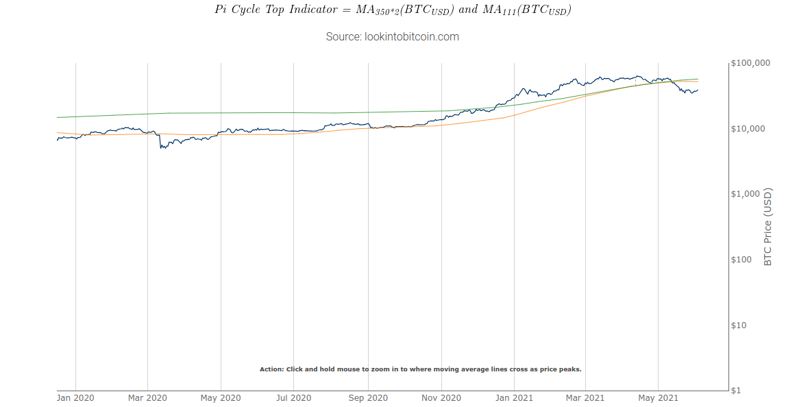 Pi Cycle Top 使用两条移动平均线——111 天和 350 天乘以 2——来确定可能的市场顶部,误差范围仅为三天。