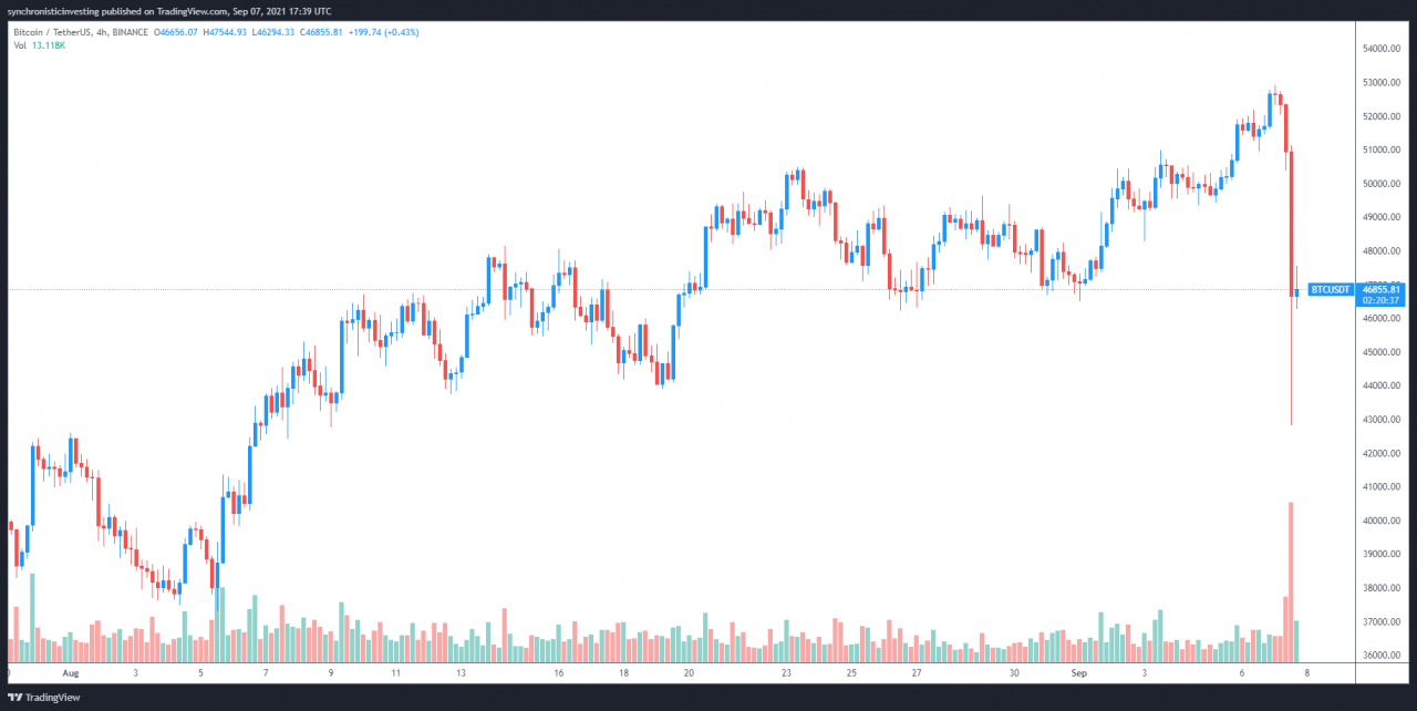 由于比特币在萨尔瓦多被正式承认为法定货币,美国劳动节假期周末后的看涨情绪一直在上涨,但这种庆祝活动很快因 BTC 暴跌 16% 而消失。
