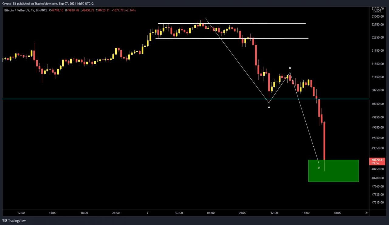 BTC/USDT 15 分钟K线走势图。 来源:推特