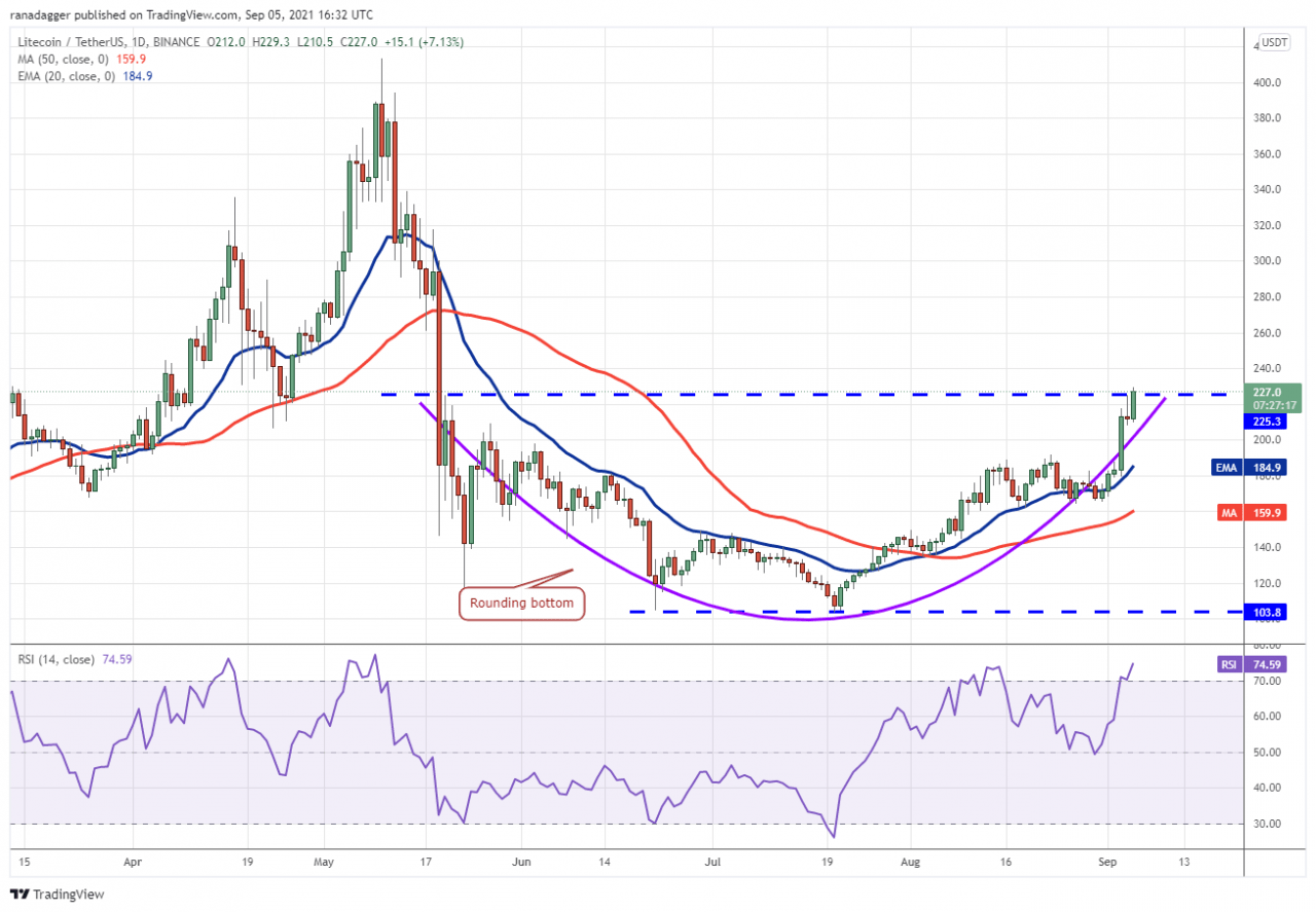 多头正试图将莱特币 (LTC) 推高并维持在上方阻力位 225.30 美元上方。 如果他们成功,它将完成一个圆底形态,可能会开始一个新的上涨趋势。