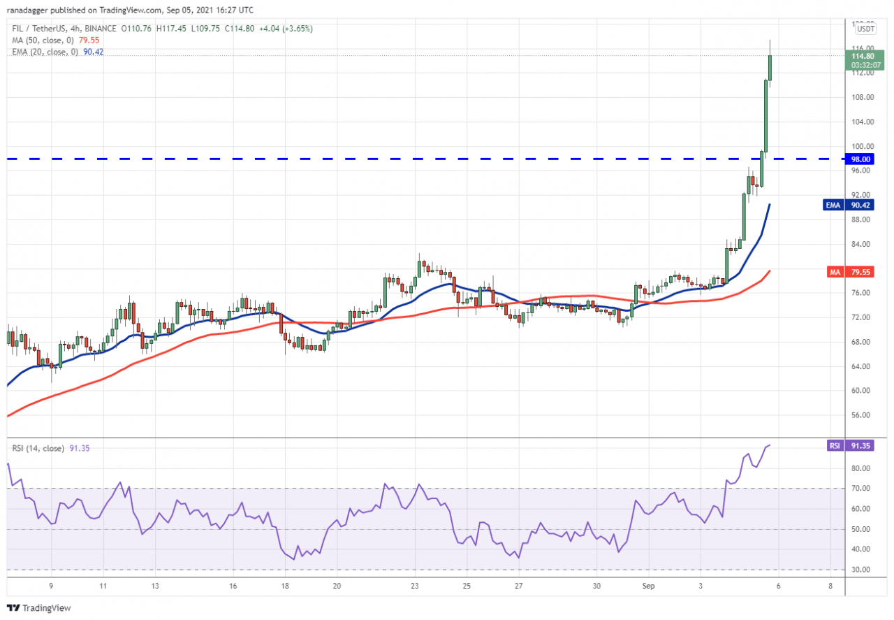 如果多头将 98 美元的水平转为支撑,则 FIL/USDT 货币对可能会恢复其上涨趋势。 相反,如果空头将价格拉低并维持在 98 美元以下,则表明最近的突破是一个牛市陷阱。 然后该货币对可能会跌至 20 天均线。